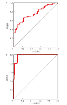 目的 利用生物信息学方法探究7-脱氢胆固醇还原酶(DHCR7)在胃癌中的表达及其与患者临床病理特征和预后的关系。方法 利用UALCAN数据库分析DHCR7在胃癌中的表达情况;采用Kaplan-Meier plotter数据库分析DHCR7 mRNA 表达及其与胃癌患者预后的关系;采用Sangerbox 3.0和TIMER数据库分析DHCR7的表达及其与肿瘤免疫浸润水平的相关性;利用实时荧光定量PCR检测DHCR7 mRNA在胃癌组织和癌旁组织中的表达;免疫组织化学染色检测胃癌组织和癌旁组织中DHCR7的表达及其与临床病理特征的相关性;采用受试者操作特征(ROC)曲线评估DHCR7表达对胃癌的诊断效能。结果 UALCAN数据库分析结果显示,不同性别(χ2=18.15,P<0.001)、Grade分级(χ2=16.32,P<0.001)及TP53突变状态(χ2=20.12,P<0.001)的胃癌患者DHCR7 mRNA表达差异有统计学意义。生存分析显示,DHCR7高表达组胃癌患者的10年总生存(OS)率(HR=1.55,95%CI为1.31~1.84,P<0.001)、10年无进展生存(PFS)率(HR=1.67,95%CI为1.36~2.05,P<0.001)及10年进展后生存(PPS)率(HR=1.81,95%CI为1.43~2.28,P<0.001)显著低于DHCR7低表达组。免疫浸润分析显示,DHCR7表达与胃癌的综合评分(r=-0.51,P<0.001)、基质细胞评分(r=-0.48,P<0.001)、免疫细胞评分(r=-0.45,P<0.001)、CD4+ T细胞(r=-3.01,P<0.001)、巨噬细胞(r=-0.40,P<0.001)、中性粒细胞(r=-0.32,P<0.001)及树突状细胞(r=-0.37,P<0.001)浸润水平均呈负相关,与胃癌细胞纯度呈正相关(r=0.15,P<0.001)。qRT-PCR结果显示,与癌旁组织(1.86±0.51)比较,DHCR7在胃癌组织中的表达(3.43±0.13)显著上调,差异有统计学意义(t=42.89,P<0.001)。DHCR7在正常胃黏膜细胞GES-1中的相对表达量为1.06±0.19,在4种胃癌细胞(HGC-27、AGS、SNU-1与SGC-7901)中的相对表达量分别为2.40±0.26、1.88±0.11、1.51±0.04和2.63±0.20,DHCR7在上述5种细胞中的表达差异有统计学意义(F=38.34,P<0.001),正常胃黏膜细胞的DHCR7相对表达量分别与上述4种胃癌细胞相比,差异均有统计学意义(P=0.002;P=0.003;P=0.017;P<0.001)。免疫组织化学结果显示,DHCR7在胃癌组织中的高表达率为80.0%(96/120),显著高于癌旁组织的68.3%(82/120)(χ2=56.84,P<0.001)。DHCR7高表达与低表达患者的肿瘤最大径(χ2=40.17,P<0.001)、组织学分级(χ2=16.20,P<0.001)及pTNM分期(χ2=16.99,P<0.001)差异均有统计学意义。ROC曲线分析结果显示,DHCR7表达水平诊断胃癌的曲线下面积(AUC)分别为0.76(基于TCGA数据库,95%CI为0.68~0.83,P<0.001)、0.97(120例胃癌临床样本,95%CI为0.95~0.99,P<0.001)。结论 DHCR7在胃癌组织中高表达,并与患者不良预后密切相关,可能是胃癌诊断和预后的新型标志物。
