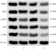 目的 探讨丝裂原活化细胞外信号调节激酶(MEK)抑制剂PD98059调控MEK/细胞外信号调节激酶(ERK)信号通路逆转人脑胶质瘤干细胞(GSC)多药耐药(MDR)性的分子机制。方法 按照CD133免疫磁珠分离试剂盒说明书分离CD133阳性人脑胶质瘤SHG44细胞,采用无血清的干细胞培养液进行培养。将GSC分为对照组(正常培养)、抑制剂组(200 μmol/L PD98059处理)、激活组(25 μmol/L芥酸精处理)和MDR1敲除组(200 μmol/L PD98059处理+MDR1基因敲除)。采用CCK-8法检测0、25、50、100、200、300、400 μmol/L浓度的PD98059处理后的GSC增殖情况。采用TUNEL染色法检测各组分别经化疗药物多柔比星或长春新碱处理后的GSC凋亡情况。实时定量PCR定量分析各组GSC MEK、ERK、MDR1 mRNA的水平,蛋白质印迹法检测p-MEK/MEK、p-ERK/ERK、MDR1蛋白表达情况,CCK-8法分析各组细胞对化疗药物的敏感性。结果 0、25、50、100、200、300、400 μmol/L浓度的PD98059处理GSC,不同时间点(24、48、72、96 h)吸光度(A450值差异均有统计学意义(F=56.22,P<0.001;F=42.69,P<0.001;F=34.19,P<0.001;F=60.28,P<0.001);与0 μmol/L相比,25、50、100、200、300、400 μmol/L浓度A450值差异均有统计学意义(均P<0.05),200 μmol/L与300、400 μmol/L浓度比较差异均无统计学意义(均P>0.05)。对照组、抑制剂组、激活组、MDR1敲除组经多柔比星处理后GSC细胞凋亡率分别为(18.21±0.33)%、(27.73±1.86)%、(20.11±2.06)%、(25.77±2.61)%,4组经长春新碱处理后GSC细胞凋亡率分别为(22.07±1.51)%、(33.89±3.12)%、(25.41±2.65)%、(30.19±3.08)%,差异均有统计学意义(F=36.46,P<0.001;F=40.14,P<0.001);与对照组相比,抑制剂组、激活组、MDR1敲除组均升高(均P<0.05);激活组均明显低于抑制剂组(均P<0.05);MDR1敲除组均明显高于激活组(均P<0.05)。4组GSC MEK mRNA分别为1.00±0.00、0.29±0.05、0.68±0.07、0.33±0.03,ERK mRNA分别为1.00±0.00、0.35±0.06、0.74±0.07、0.38±0.04,MDR1 mRNA分别为1.00±0.00、0.51±0.08、0.89±0.09、0.56±0.06,差异均有统计学意义(F=30.26,P<0.001;F=22.59,P<0.001;F=18.75,P<0.001);与对照组相比,抑制剂组、激活组和MDR1敲除组均下降(均P<0.05);激活组均明显高于抑制剂组(均P<0.05);MDR1敲除组均低于激活组(均P<0.05)。4组GSC p-MEK/MEK蛋白水平分别为0.90±0.09、0.29±0.05、0.47±0.05、0.32±0.04,p-ERK/ERK蛋白水平分别为1.19±0.13、0.37±0.06、0.55±0.06、0.40±0.04,MDR1蛋白水平分别为1.08±0.12、0.62±0.07、0.73±0.07、0.65±0.06,差异均有统计学意义(F=51.74,P<0.001;F=42.30,P<0.001;F=36.58,P<0.001);与对照组相比,抑制剂组、激活组和MDR1敲除组均下降(均P<0.05);激活组均明显高于抑制剂组(均P<0.05);MDR1敲除组均明显低于激活组(均P<0.05)。4组GSC多柔比星半数抑制浓度(IC50)分别为0.88、0.23、0.79、0.56 mg/L,长春新碱IC50分别为0.84、0.18、0.75、0.51 mg/L,差异均有统计学意义(H=17.84,P<0.001;H=15.43,P<0.001);抑制剂组均低于对照组(均P<0.05);激活组均高于抑制剂组(均P<0.05);MDR1敲除组均低于激活组(均P<0.05)。结论 MEK抑制剂PD98059可通过抑制MEK/ERK信号通路降低GSC MDR1 mRNA水平,提高其对多柔比星、长春新碱化疗药物敏感性。