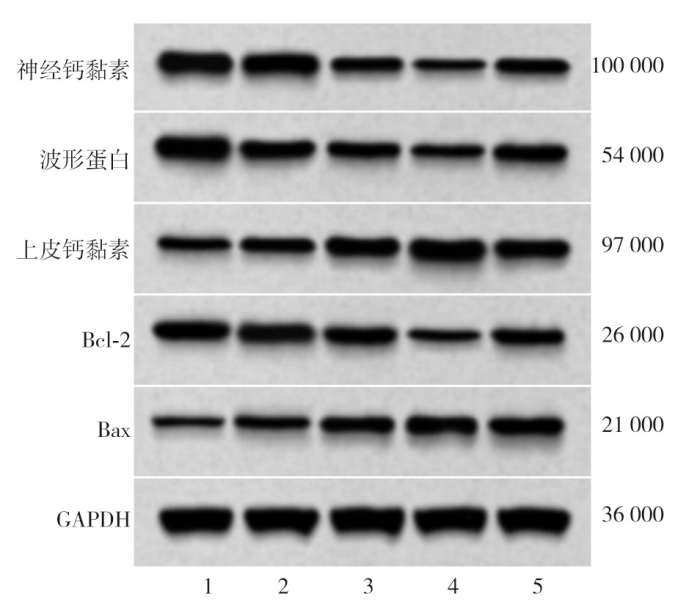 | 组别 | 神经钙黏素 | 波形蛋白 | 上皮钙黏素 | Bcl-2 | Bax |