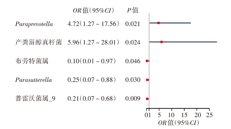 | 产粪甾醇真杆菌 | 0.93(0.43,2.23) | 0.42(0.09,1.20) | 85.50 | 0.041 |
