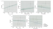 | 产粪甾醇真杆菌 | 4 | MR Egger | 8.26(1.17~18.50) | 0.182 | 0.56 | 0.757 | -0.26 | 0.278 | 23.33 | |