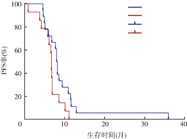 | 中性粒细胞减少 | 14(31.82) | 18(30.00) | 0.04 | 0.843 | 肝功能异常 | 7(15.91) | 6(10.00) | 0.81 | 0.368 |